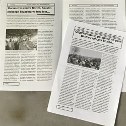 Por una parte leo, escucho y reflexiono sobre cómo se dan los fenómenos de la apropiación de las tecnologías digitales y por otra, encuentro que los medios de comunicación en la RCA se limitan a periódicos producidos en Bangui, que en su presentación grafica se asemejan a pasquines, o a las radios financiadas por la ONU o por otras ONG. ¡No hay imprenta, todo lo quemaron en 2015!, me comenta un vendedor de libros usados[7] cuando le pregunto por los periódicos. ¿Dónde se encuentra la información? Las personas entrevistadas coinciden en que es la radio el principal medio al que recurren los centroafricanos para informarse.